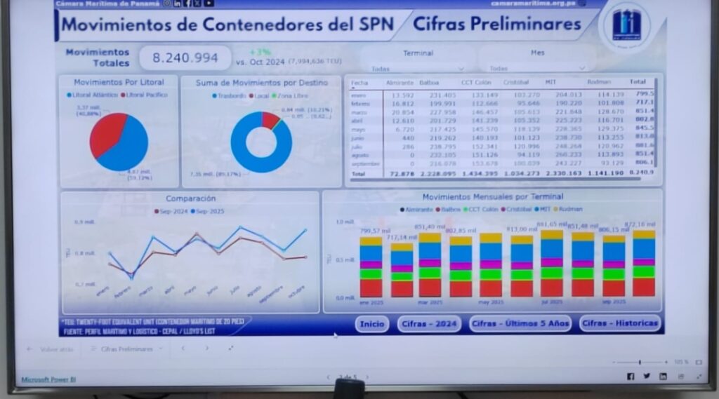 “Esta información hay que filtrarla, analizarla para poder llevarla a estos dashboards interactivos. La Unidad de Inteligencia Marítima va a trabajar con ella, con todas las medidas de seguridad y respeto a la privacidad. Estos datos existen en los portales de la Autoridad Marítima de Panamá (AMP) y de la Autoridad del Canal de Panamá (ACP). Pero se encuentran muy dispersos. Estos dashboards y pantallas interactivas le van a permitir al usuario ver la información de una manera más friendly”, indicó.